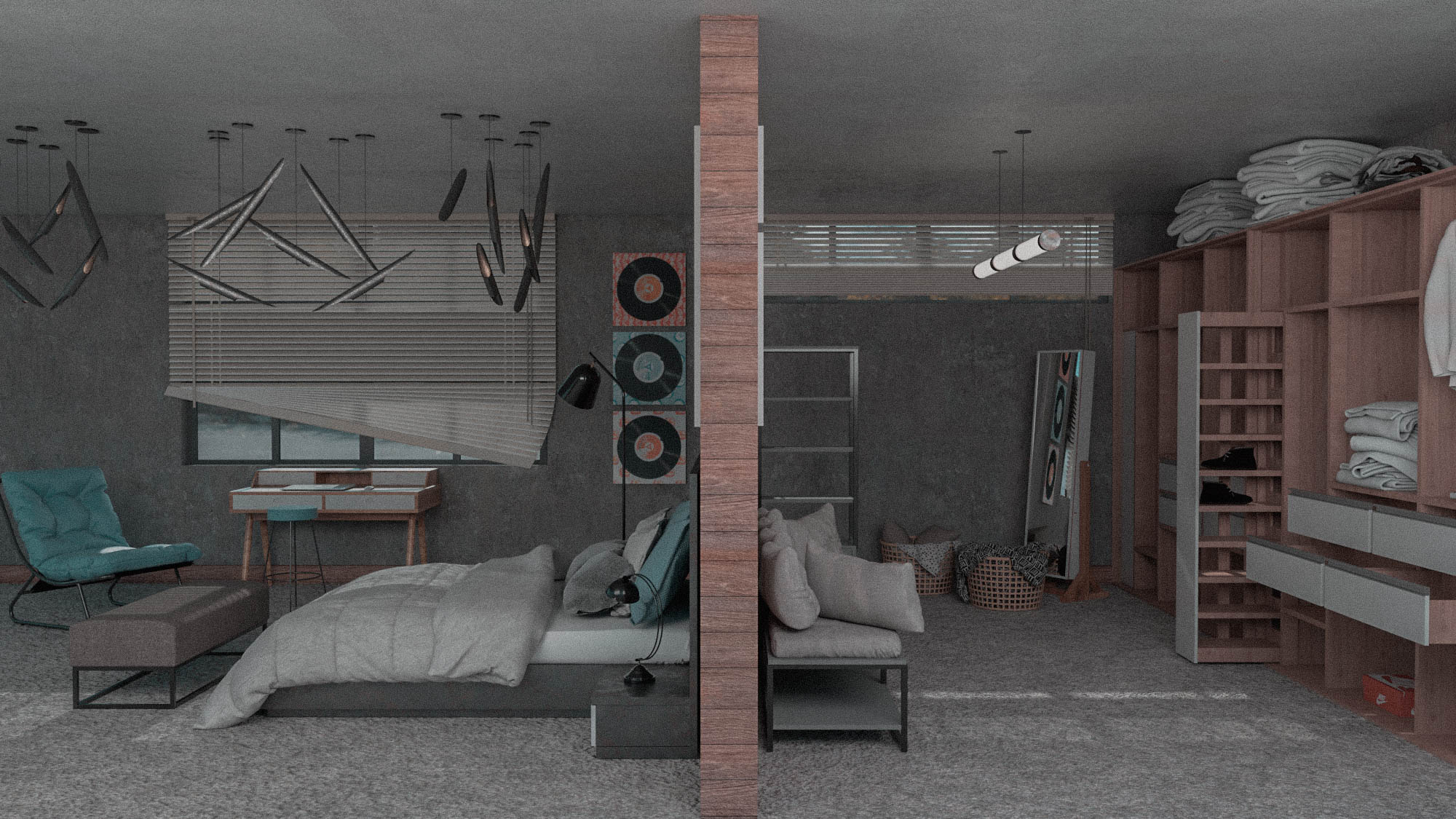 Recamara V6 es un proyecto adaptativo para una recamara común, en donde se plantea solucionar los espacios con un clóset abierto.